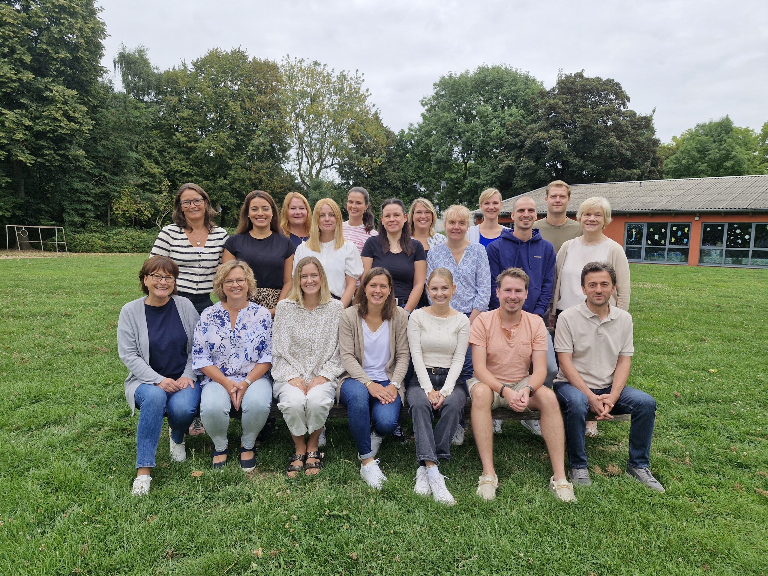 Obere Reihe (v.l.n.r.): Frau Molsner, Frau Spyridakis, Frau Becker, Frau Frankowski, Frau Timmermanns, Frau Egerding, Frau Hildesheim, Frau Moß, Frau Franke, Herr Gaelings, Herr Kanka, Frau Bochmann